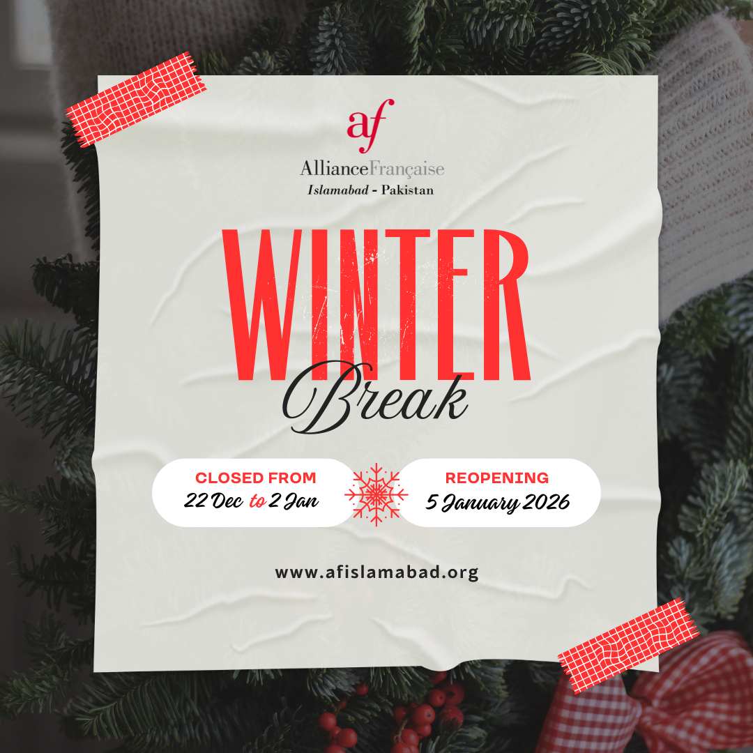 Alliance Française d’Islamabad will remain closed from 22 December to 2 January for the winter break.